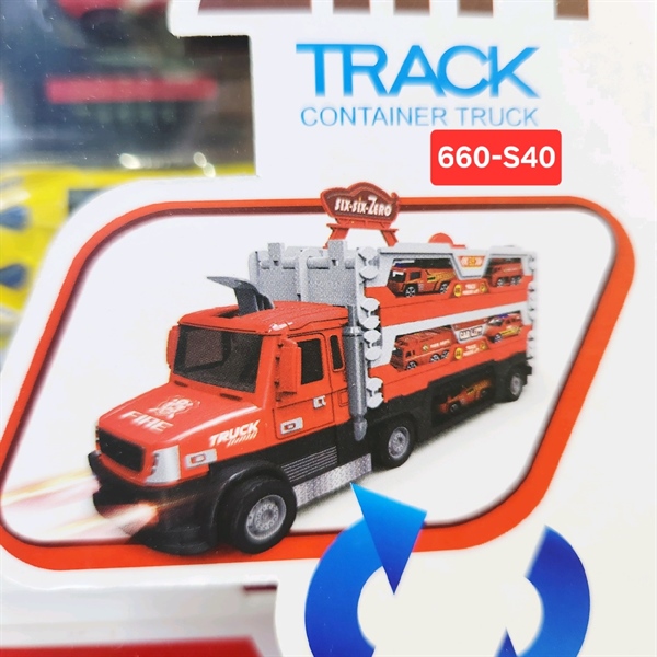 660-S40 HỘP XE CONTAINER PIN DÀI 140cm TRỚN CÓ BỆ PHÓNG + 8C XE HƠI SẮT - TP