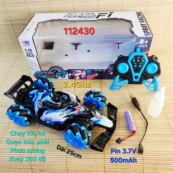 112430 HỘP XE ĐUA CÓ NGƯỜI ĐIỀU KHIỂN 7 ĐỘNG TÁC, PHUN KHÓI, BÁNH XOẮN ĐÈN